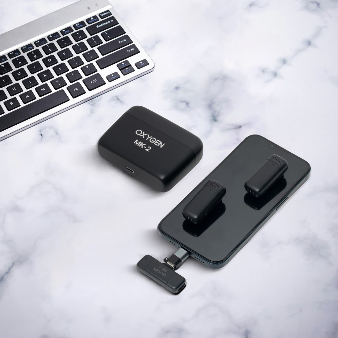 دارای دو میکروفون بی سیم و یک گیرنده که به گوشی یا تبلت با پورت تایپ سی یا لایتنینگ وصل می شود